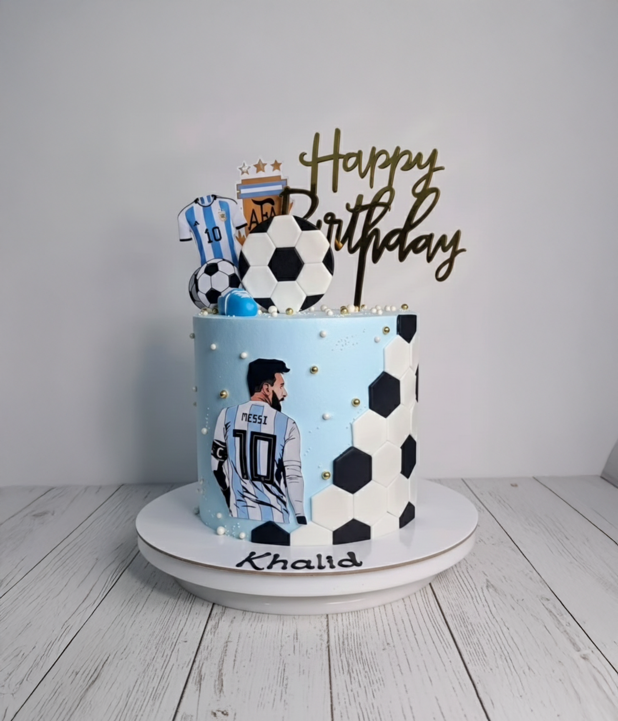 We pride ourselves on offering the highest-quality cakes, and the Messi Feature Cake is no exception. Using only premium ingredients, we ensure that each layer speaks of texture, flavor, and irresistible aroma. The craftsmanship that goes into creating this masterpiece mirrors Messi’s own dedication to perfection on the field. From the rich and moist base to the intricate Messi-themed designs adorning the top, every element is made to impress.