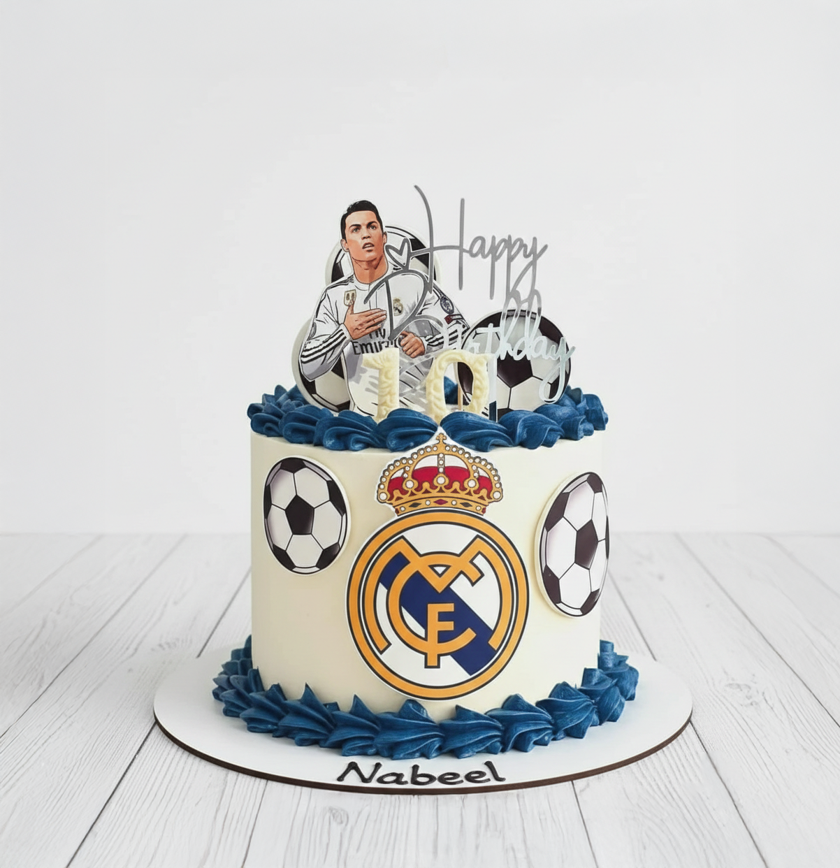 Our Real Madrid Football Cake stands out with its intricate design, featuring the iconic Real Madrid crest, vivid team colors, and football-inspired decorations. Every detail has been meticulously crafted to recreate the essence of the legendary team. But this cake isn’t just a visual masterpiece—it’s a delightful treat for the tastebuds. Made with premium ingredients, the sponge is moist and fluffy, complemented by layers of creamy, decadent filling that will leave everyone asking for seconds.