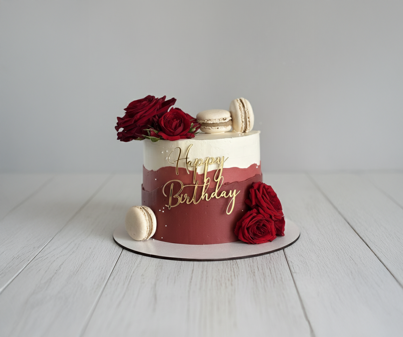 Our cakes are baked fresh and hand-decorated for a flawless presentation. The smooth, creamy filling complements the light and airy macaroon layers, creating a perfect textural contrast in every slice.